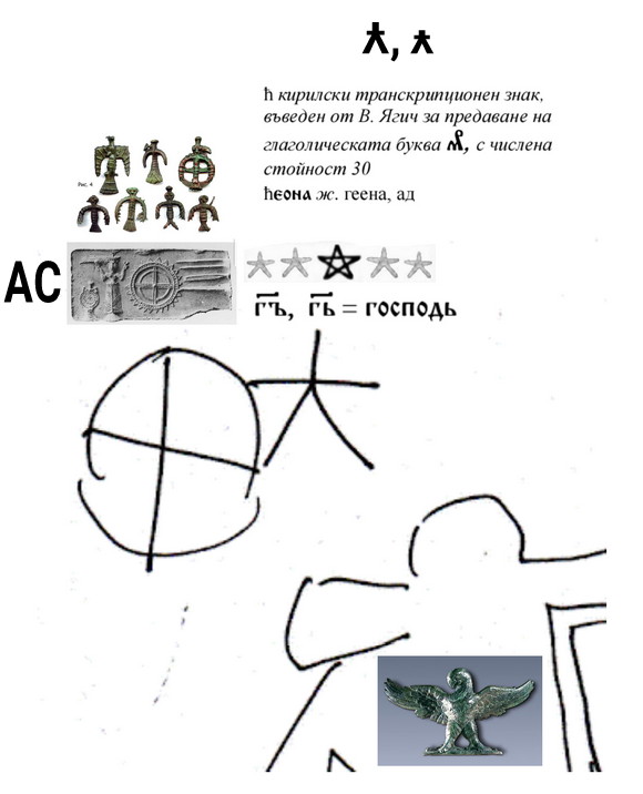 Именно сътворението на българския свят започва с лето (лети), го-дина (господар Дина - секира), с година 7534, или 5508 пр.н.е., като старите автори пишат, че до създаването на Рим, име Рамѣнъ (сила), рамо върху което е стоял *а"рьмъ (а"ремъ) - иго (гнетъ, огнетъ) - огъня, сиреч *иги - ⲓҮⲓ, дадено по а"рьлъ (рало), името на Ремъ (а"ремъ - яремъ), Ромул и Рем, едно и също име по значение, епитет на бог Арис (Марис), с епитет Руменъ (зачервен - силен, сълнъ - сълньце), пеларгите са обиколили целия свят като са покорили всички народи по целия свят, посредством *силатата си в оръжието,* а не войната. Сиреч са научили всички хора по света на оръдието на труда - аремъ (яремъ), оръдие на труда аруже (оруже) - руже, по същия бог Арис, ярем във формата на две крила - В(пряг), върху раменете на воловете, или буква А (Ϸ) - αрьмъ, единичен ярем.